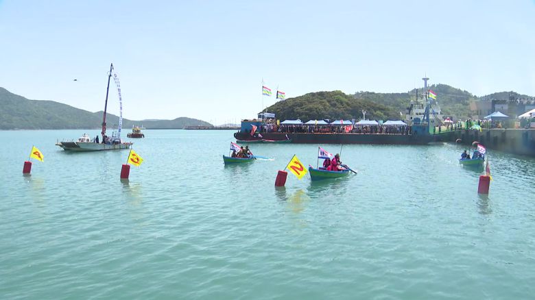 바다에서는 전통 노 젓기 대회가 열렸습니다.