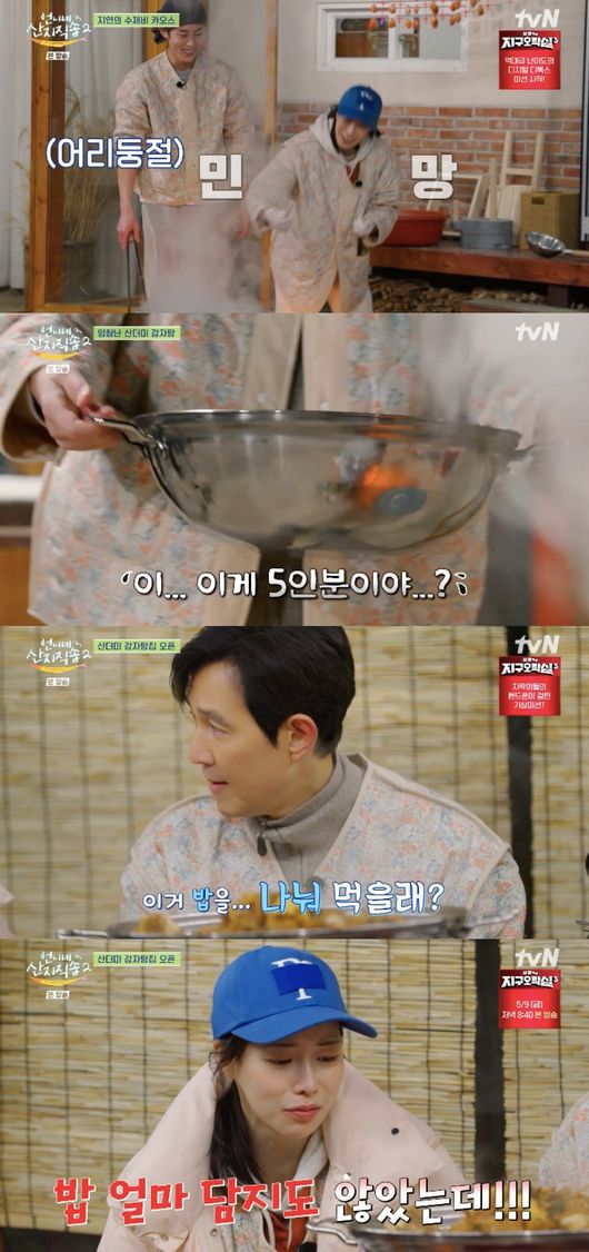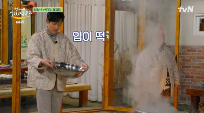 이윽고 완성된 염정아표 감자탕. 엄청난 크기를 자랑하는 냄비에 이정재는 “이게 5인분이야?”라고 당황했고, 염정아는 “소식좌시거든”이라고 말했다.