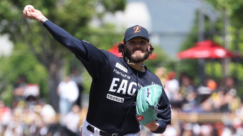 ▲ 4일 광주기아챔피언스필드에서 열린 프로야구 한화 이글스와 KIA 타이거즈의 경기. 한화 폰세 선발투수가 1회에 투구하고 있다.
