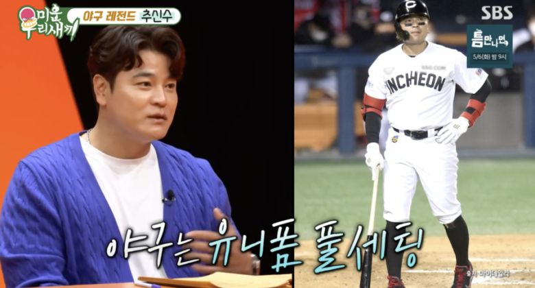 4일 오후 방송된 SBS 예능프로그램 ‘미운 우리 새끼’(이하 미우새)에는 야구 선수 추신수가 게스트로 출연했다. 이날 추신수는 농구 선수 출신 서장훈 앞에서 "야구 선수는 머리부터 발끝까지 다 갖춰서 입는 반면, 농구는 날씨가 후덥지근 한 날 슈퍼에 뭐 사러 가는 복장 아니냐"라고 말했다.