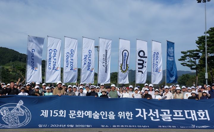 [서울=뉴시스] 제15회 문화예술인을 위한 자선골프대회’ 참가자들이 기념사진을 찍고 있다. (사진=골프존문화재단 제공) 2025.05.05 photo@newsis.com *재판매 및 DB 금지 |