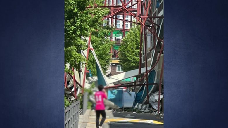 이 사고로 다친 사람은 없었으며, 지붕이 근처 중학교 쪽으로 떨어지면서 담벼락 일부가 파손됐습니다.