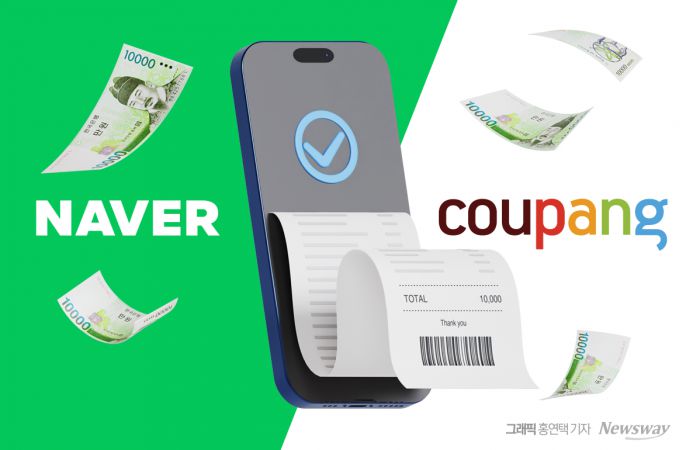 국내 이커머스 시장을 둔 네이버와 쿠팡의 점유율 경쟁이 치열하게 전개되고 있다. 그래픽=홍연택 기자 |