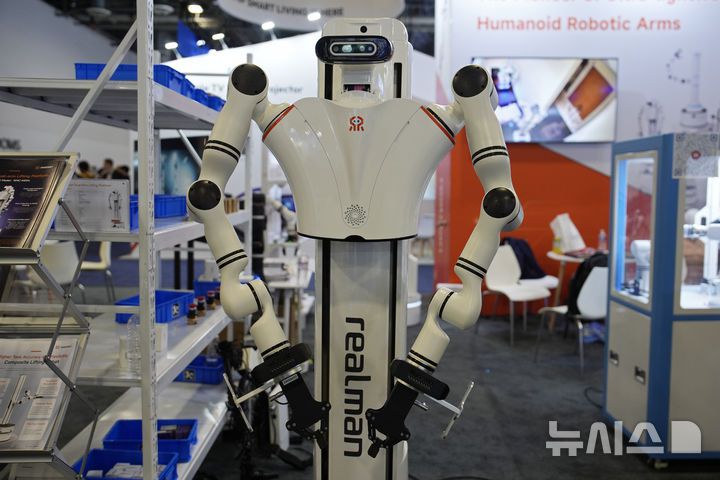 [라스베가스=AP/뉴시스] 지난 1월8일 라스베가스에서 열린 CES 기술 박람회에서 전시된 체화지능형 로봇. 2025.04.27.