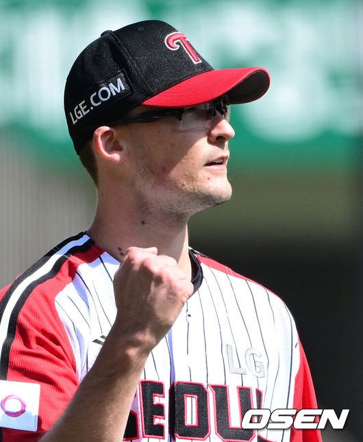 [OSEN=잠실, 지형준 기자] 4일 오후 서울 잠실야구장에서 2025 신한 SOL Bank KBO리그 LG 트윈스와 SSG 랜더스의 경기가 열렸다.이날 엘리에이저 에르난데스의 부상 대체 외국인투수로 LG에 입단한 코엔 윈이 KBO리그 데뷔전을 갖는다. SSG 선발은 박종훈.4회초 2사 2,3루에서 LG 코엔 윈이 SSG 고명준을 3루 땅볼로 처리하며 기뻐하고 있다. 2025.05.04 /jpnews@osen.co.kr |