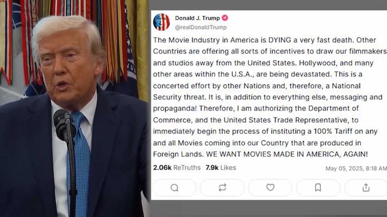 도널드 트럼프 미국 대통령은 현지시간 4일 "상무부와 미국무역대표부에 외국에서 제작된 모든 영화에 대해 100% 관세를 부과하는 절차를 즉시 시작하도록 승인할 것"이라고 밝혔습니다.