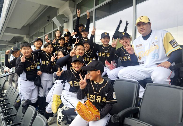 류현진재단은 5일 어린이날을 맞아 대전 유천초등학교 야구부 학생 및 지도교사 20명을 대전한화생명볼파크 내부에 있는 '류현진재단 스카이박스'에 초청해 KBO 리그 경기 관람 행사를 진행했다.