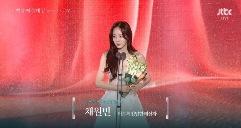 수상대에 오른 채원빈은 "백상에 노미네이트된 것만으로도 굉장히 영광인데 상까지 안겨주시니 몸둘 바를 모르겠다"며 "이토록 친밀한 배신자를 집필한 작가님, 든든하고 멋있었던 감독님, 정말 아버지 같았던 한석규 선배님과 모든 존경하는 선배들 덕분에 정말 많이 배우고 느낀 현장이었다"고 입을 열었다.