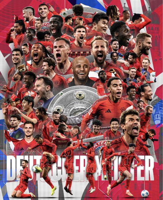 바이에른은 5일(한국시간) 구단 홈페이지를 통해 "바이에른은 2024-2025시즌 챔피언이다! 바이에른이 다시 한번 독일 챔피언이 됐다! 레버쿠젠은 일요일 프라이부르크와 무승부를 기록한 뒤 더 이상 분데스리가 정상에 오를 수 없게 됐다. 바이에른이 독일 챔피언이 된 건 34번째이며 훌륭한 시즌에 대한 보상"이라고 발표했다.