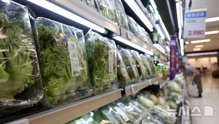 [서울=뉴시스] 김선웅 기자 = 서울 소재 유통매장에서 상추 등 농산품이 판매되고 있는 모습. 2024.08.21. mangusta@newsis.com