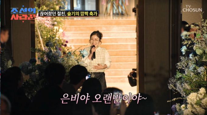 노래를 마친 박슬기는 "은비야 안녕. 은비가 너무 많이 울어서 은비를 못 보겠다"며 하객들에게 "은비와 20년 지기 친구다. 중간에 연락을 좀 못하다가 결혼이라는 큰 축제 날에 신부 허락도 안 받고 갑자기 오게 됐다"고 말했다.