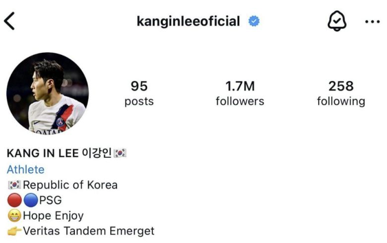 이강인의 SNS가 바뀌었다. 지난 2023년 7월 프랑스 최고 명문 파리 생제르맹(PSG) 입단 뒤 프로필에 새겨졌던 'PSG' 단어가 사라졌다.