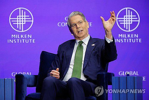 '밀컨 콘퍼런스' 참석해 연설하는 스콧 베선트 미 재무장관 |