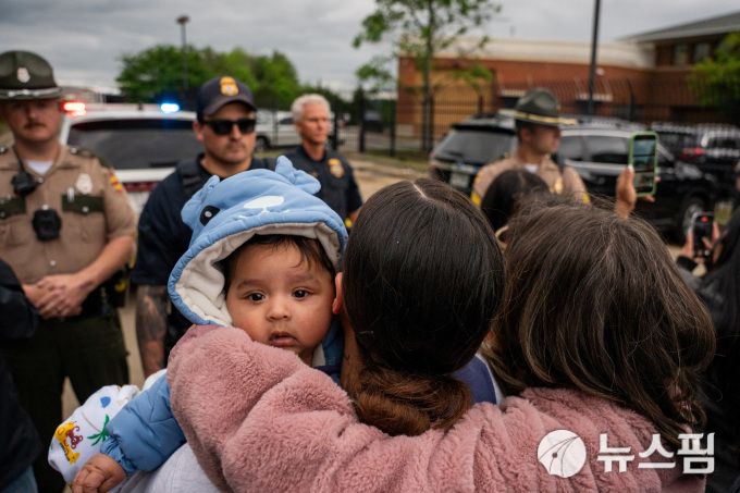 테네시 주 내슈빌의 DHS 필드에서 지난 4일(현지시간) 이민자 권리 단체들이 항의 시위를 벌였다. 한 어머니는 아이를 안고 이 시위에 참여했다.[사진=로이터 뉴스핌] 2025.05.06 mj72284@newspim.com |