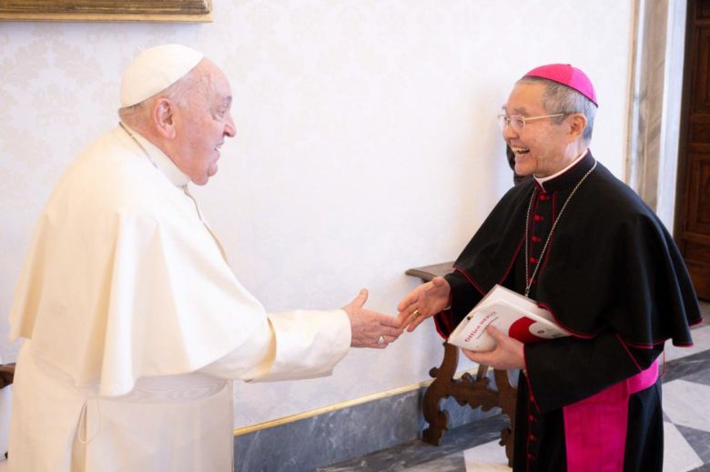 1월 퇴임을 앞두고 프란치스코 교황을 알현하고 있는 장인남 대주교(오른쪽). 그는 “교황청은 세계 대부분의 국가 및 국제기구에 교황대사를 파견하고 있고, 세계 평화와 인권 문제를 물밑에서 중재하는 작은 거인”이라며 “더 많은 사제가 교황청 외교관으로 활동할 수 있으면 좋겠다”고 했다. 장인남 대주교 제공 |