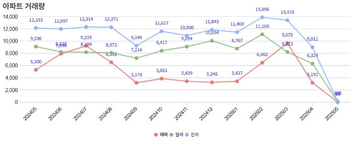 토허구역 해제 영향으로 서울 아파트는 지난 1분기, 특히 2·3월 거래가 급증했다가 토허구역 확대·재지정이 이뤄진 직후인 지난달부터 거래량이 급감했다.