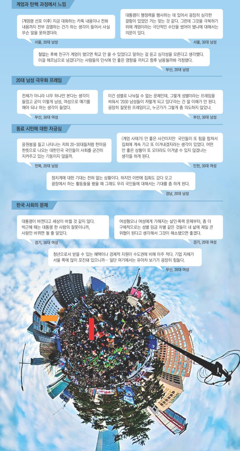 전북의 20대 남성 참여자는 “응원봉을 들고 나타나는 저희 20~30대들처럼 한마음 한뜻으로 나오는 대한민국 국민들이 사회를 굳건히 지켜주고 있는 기둥이지 않을까”라고 말했다.