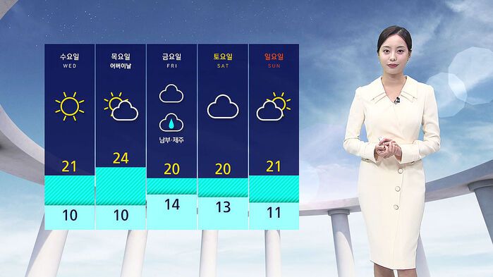 금요일에는 남부와 제주에 비 소식이 들어 있습니다.