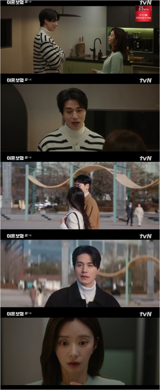 5일 방송된 tvN 월화드라마 '이혼보험' 11회에서는 노기준(이동욱 분)이 강한들(이주빈)에게 과거 결혼 생활을 언급한 모습이 그려졌다.