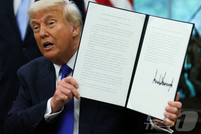 도널드 트럼프 미국 대통령이 5일(현지시간) 미국 워싱턴DC 백악관 오벌오피스에서 서명한 행정명령을 들어보이고 있다. ⓒ 로이터=뉴스1 ⓒ News1 류정민 특파원 |