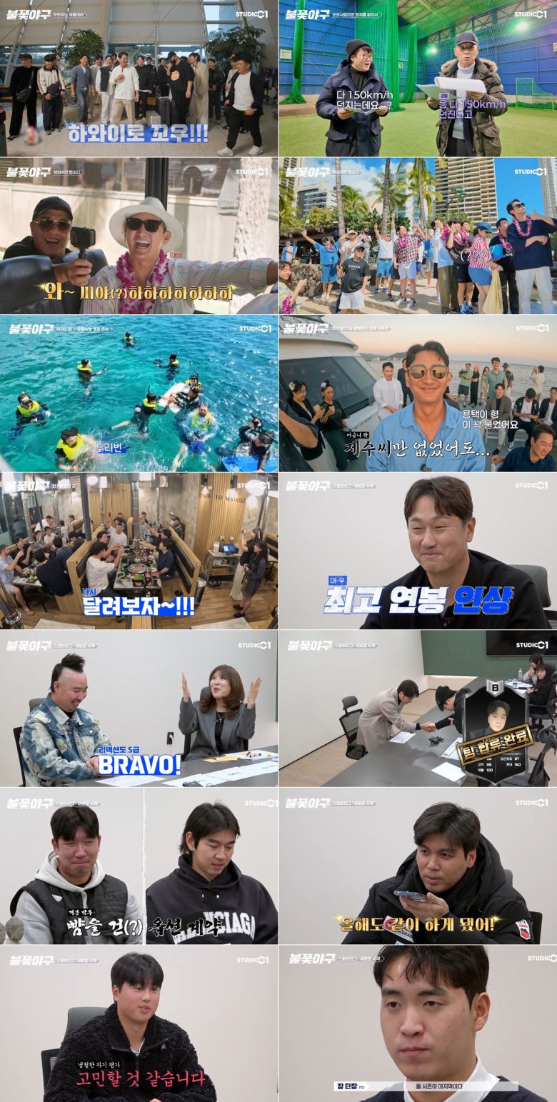 어제(5일) 오후 8시 StudioC1 공식 유튜브 채널을 통해 첫 공개된 야구 예능 프로그램 ‘불꽃야구’ 1화에서는 창단 첫 시즌을 앞두고 휴가를 떠난 불꽃 파이터즈 멤버들의 행복한 모습과 ‘2025 스토브리그’ 현장이 전격 공개됐다.