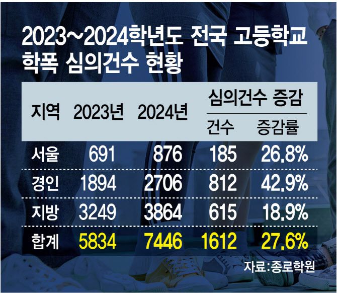 전국 고교 학폭 심의 7446건…전년대비 1612건↑
