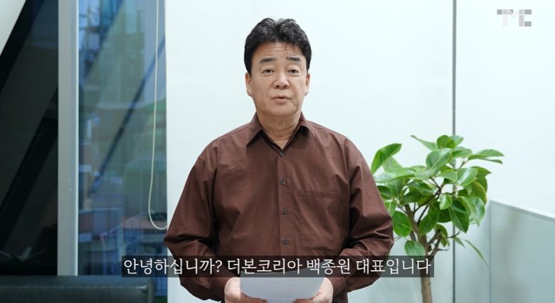 이제 방송인이 아닌 기업인 백종원으로서, 저의 모든 열정과 온 힘을 오롯이 더본코리아의 성장과 가맹점주님들의 발전에 집중하겠습니다.