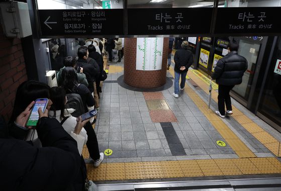 서울 2호선 시청역에서 시민들이 지하철을 기다리고 있다. 연합뉴스