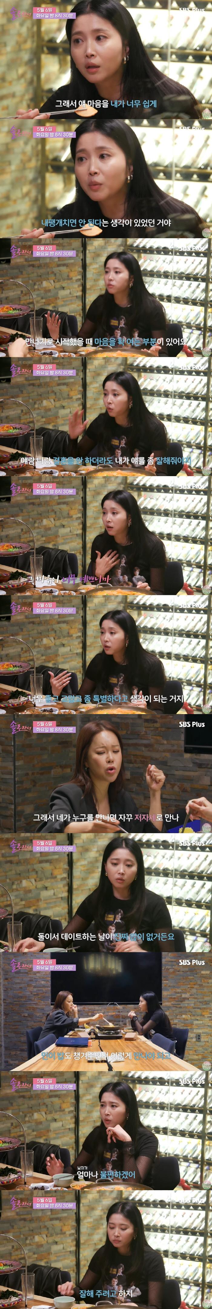 이를 들은 백지영은 "네가 누구를 만나면 자꾸 저자세로 만난다"고 했다. 이에 오윤아는 "둘이서 데이트하는 날이 진짜 많이 없다"면서 "민이랑 같이 셋이 집에 있으면서 민이 밥도 챙겨주면서 만나야 되고 남자가 얼마나 불편하겠냐"며 이유에 대해 털어놨다.