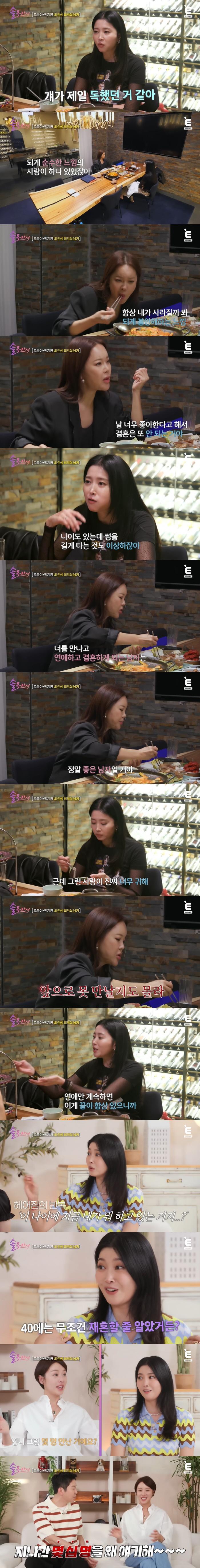 그는 "그 기간이 이렇게 길 줄 몰랐다. 무조건 40대에 재혼할 줄 알았다. 근데 그게 안되더라"고 했다. 그때 황정음은 "언니 지금까지 몇 명을 만났냐"고 물었고, 신동엽은 "지나간 몇 십명을 왜 이야기 하냐"며 장난을 쳐 웃음을 자아냈다.
