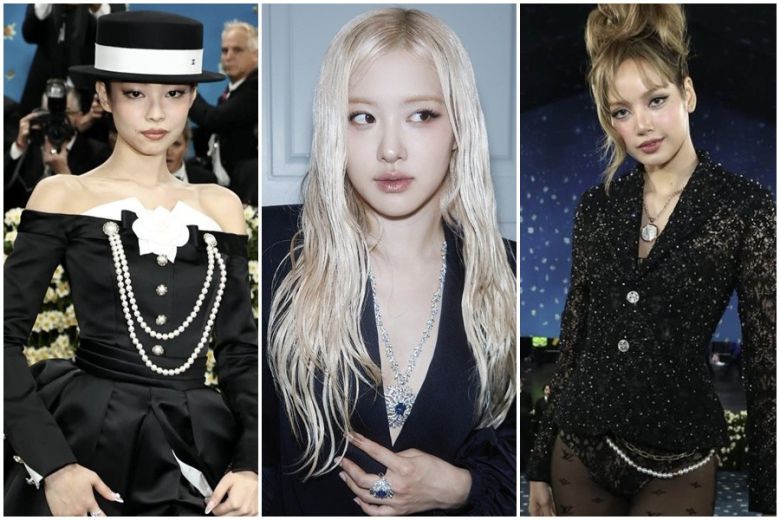 제니는 이번이 3번째다. 매혹적인 스타일링을 선보였다. 검은색 정장 바지에 진주 체인이 달린 오프숄더 톱, 화이트 앤 블랙 중절모를 매치했다.