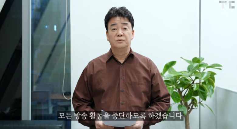 백종원 더본코리아 대표가 6일 오전 유튜브 채널 '백종원 PAIK JONG WON'의 영상을 통해 방송활동 중단을 선언했다. 유튜브 영상 캡처. |