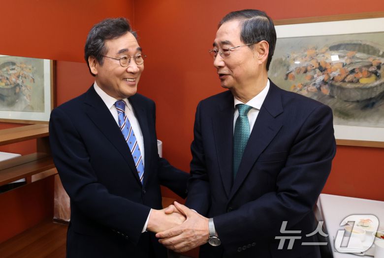 (서울=뉴스1) 박기현 정윤미 기자 = 한덕수 무소속 예비후보와 이낙연 새로운민주당 상임고문이 6일 '반(反)이재명 개헌연대'에 사실상 합의했다.