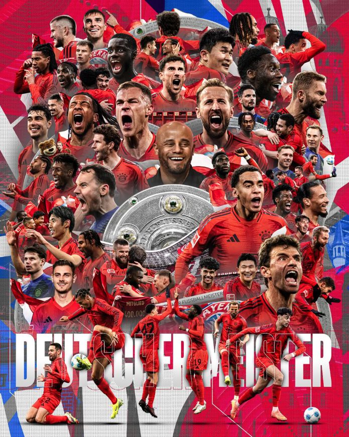 뮌헨이 분데스리가 우승을 차지한 것은 2022-2023시즌 이후 2년 만이다. 뮌헨은 이번 우승으로 분데스리가 우승 기록을 34회로 늘렸다.