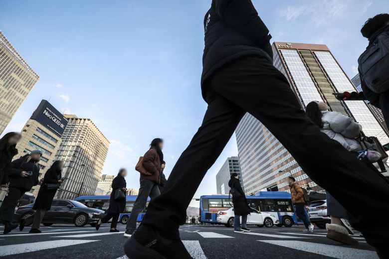 우리나라 20∼40대 청년들이 남녀를 가리지 않고 결혼이나 자녀보다 일을 우선순위에 두고 있다는 조사 결과가 나왔다. 서울 종로구 광화문네거리에서 직장인들이 출근하고 있다. 뉴시스 |