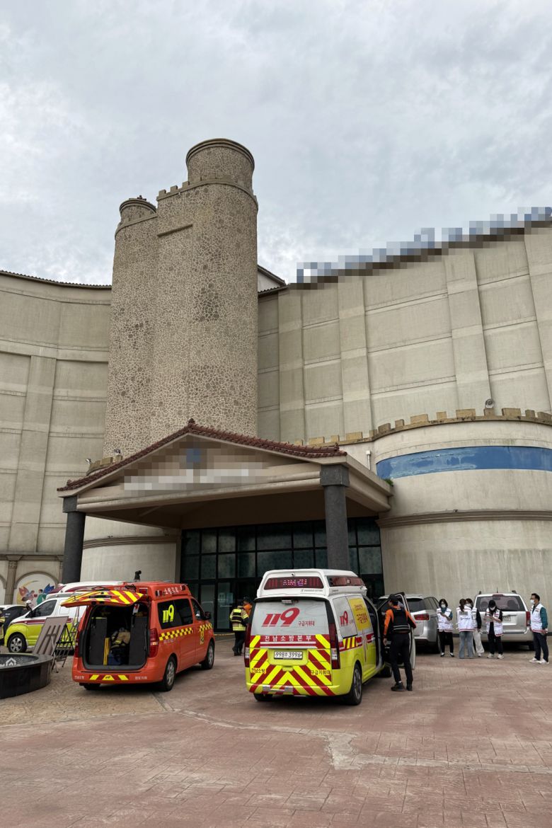 지난 5일 오전 전남 완도군 완도읍 한 리조트에서 숙박객 14명이 두통과 어지럼증 등 가스중독 증상을 보여 119구급대가 환자 이송을 준비하고 있다. 연합뉴스