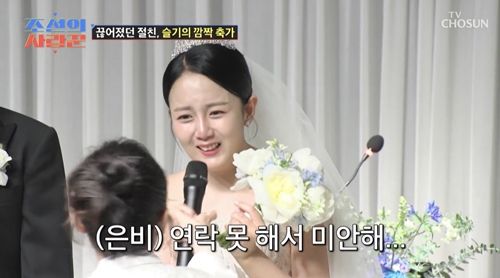연락을 끊었던 20년 절친 박슬기와의 감동 재회도 큰 화제를 모았다. 영화 ‘몽정기2’에서 처음 만난 이래 서로의 청춘을 나눴던 친구와의 재회는 강은비에게 가장 눈물 나는 순간이었다. 신랑 변준필이 축가를 부탁하며 준비한 이 서프라이즈는 결혼식 하객들의 눈시울까지 적셨다.