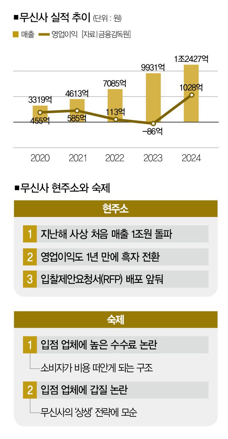 패션 플랫폼 무신사가 기업공개(IPO)를 본격 추진한다. 증권사에 입찰제안요청서(RFP) 배포를 앞둔 시점에 사상 최대 실적과 흑자 전환이란 두마리 토끼를 잡아 IPO 기대감을 높이고 있다. 하지만 높은 수수료, 갑질 의혹 등 IPO를 향한 무신사의 질주를 가로막는 변수도 숱하다.