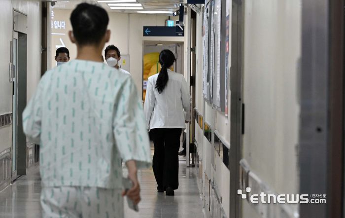 서울 종로구 서울대학교병원에서 의료진과 환자가 이동하고 있다. 김민수기자 mskim@etnews.com |