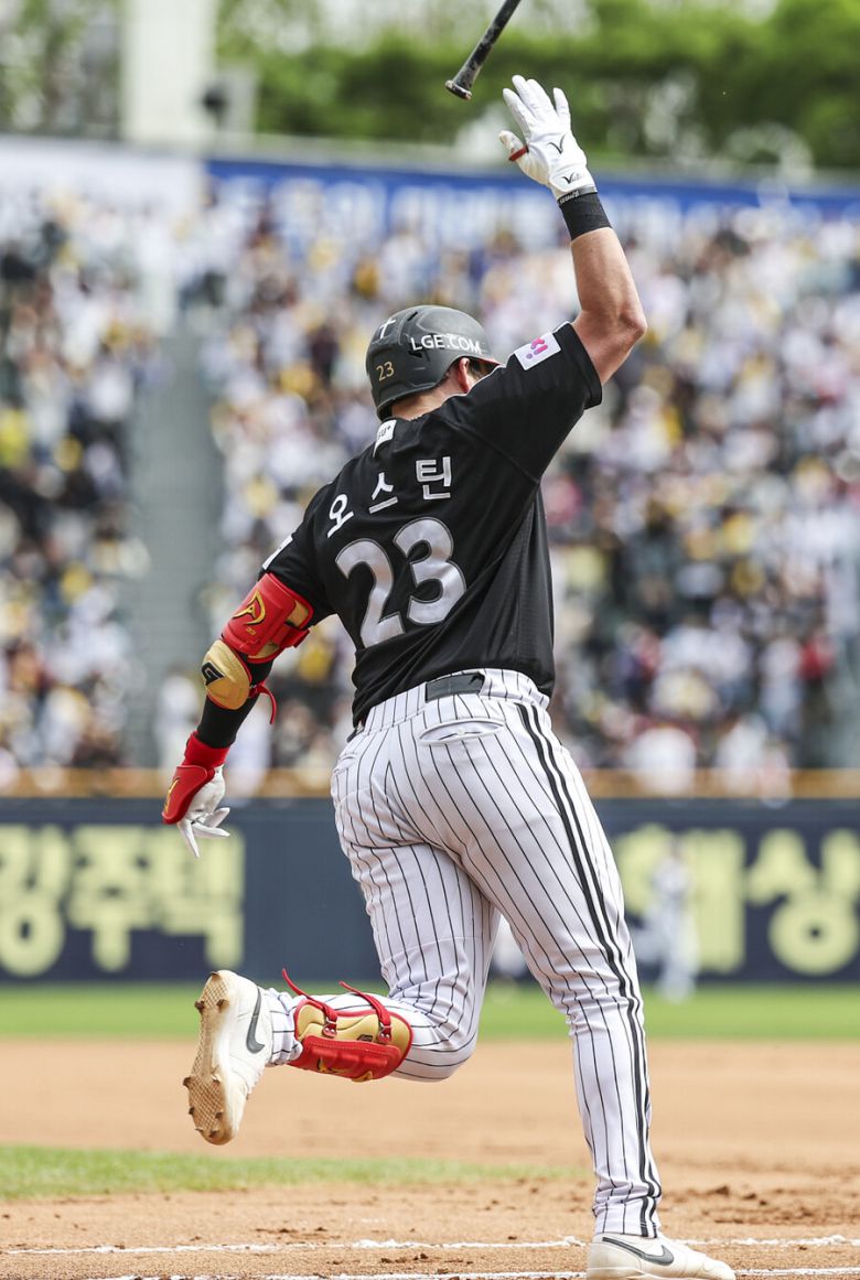아찔한 장면도 있었다. 8회초 선두타자로 나온 오스틴은 중전 안타로 1루에 나갔고 문보경은 2루수 방면으로 땅볼 타구를 쳤다. 이때 2루로 향하던 오스틴과 2루수 강승호가 정면으로 충돌했고 오스틴은 한동안 그라운드에 쓰러져 고통을 호소했다. 오스틴은 수비 방해 아웃이 선언됐다. LG는 8회말 수비에 문정빈을 대신 1루수로 내보냈다.