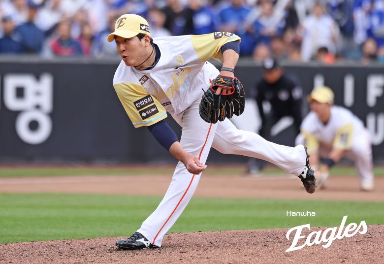 류현진에 이어 박상원이 올라와 6회초 1이닝을 무실점으로 깔끔하게 막았다. 7회초 마운드를 넘겨받은 김범수는 아웃카운트 1개를 잡고 김태근에게 볼넷을 허용했고, 김범수 뒤로 정우주 등판. 정우주는 강민호와 디아즈를 각각 2구, 1구에 뜬공 처리하고 이닝을 정리했다.
