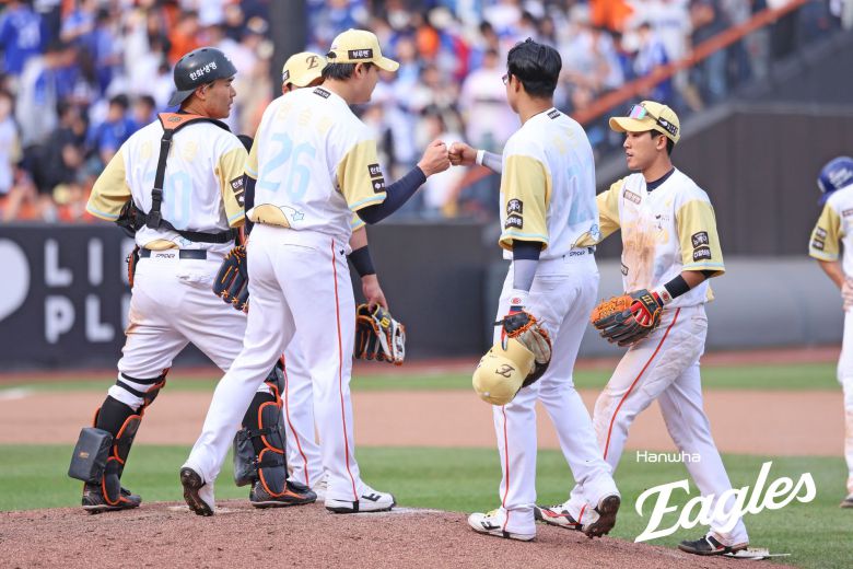 마무리 김서현은 연투로 휴식을 취하는 날, 한승혁이 9회초를 맡아 그대로 경기를 끝냈다. 이재현을 2루수 땅볼로 돌려세운 뒤 김성윤은 헛스윙 삼진으로 돌려세웠다. 이어 김태근의 출루를 허용했으나 김재성을 잡으면서 한화의 8연승이 완성됐다.