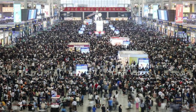 중국 노동절 상하이 철도역의 인파./EPA·신화 연합뉴스 |