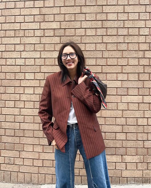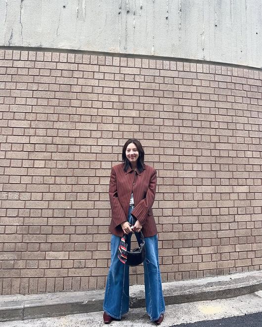 사진 속 손담비는 스트라이프 패턴의 재킷과 와이드 팬츠를 매치한 상태로 시크한 표정으로 포즈를 취하고 있다. 미니멀한 블랙 백과 선글라스를 더해 꾸민 듯 안 꾸민 듯 자연스러우면서도 힙한 매력을 자아냈다.