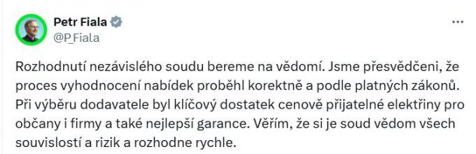 피알라 총리는 이날 자신의 소셜미디어 계정을 통해 "공급업체 선정 시 핵심 기준은 국민과 기업에게 충분하고 가격 경쟁력 있는 전기를 제공하는 것이었으며 또한 최고의 보장 조건이었다"며 이같이 밝혔다.