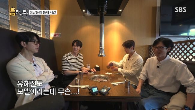 기분 좋게 첫 번째 틈 주인과의 만남을 마친 네 사람은 유재석과 차승원의 단골 고깃집에서 점심 식사를 즐겼다. 식사 중 유재석이 “모델 선후배 식사 자리에 내가 낀 것 같다”고 하자 차승원은 “너도 모델 아니냐. 유해진도 모델이라고 하더라”고 말해 웃음을 자아냈다.