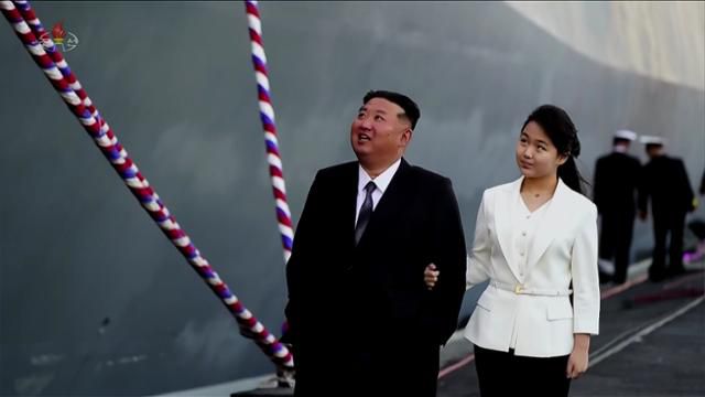 김정은 북한 국무위원장이 딸 주애와 함께 지난달 북한의 5,000t급 신형다목적구축함 '최현호' 진수식에 참석했다. 뉴시스 |