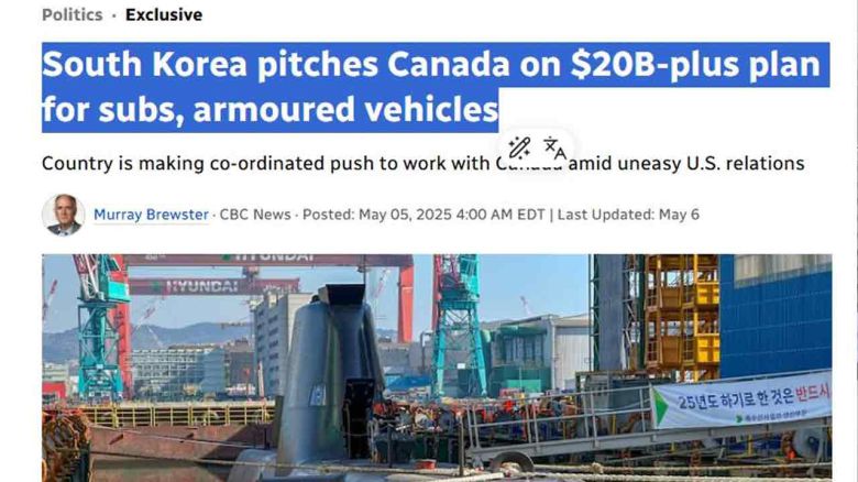 현지 시간 5일 캐나다 최대 TV 방송인 CBC는 한국 방위산업체 세 곳이 올해 3월 초 캐나다 정부에 민간제안사업 방식으로 제안서를 제출한 것으로 확인됐다고 보도했습니다.