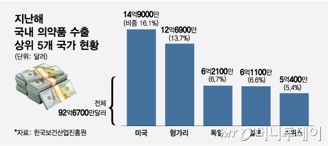 지난해 국내 의약품 수출 상위 5개 국가 현황/그래픽=최헌정 |