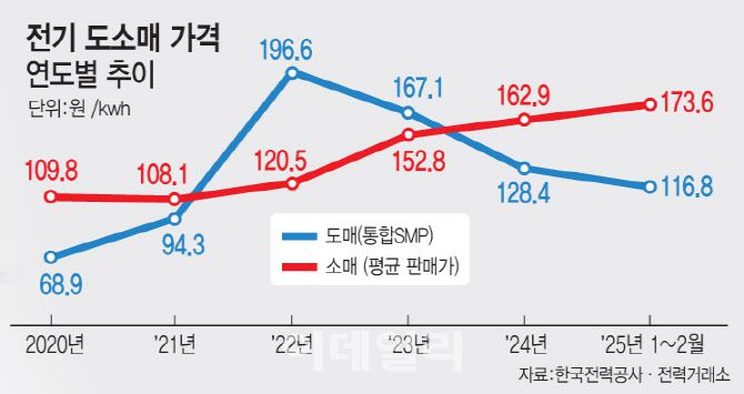 최근 3년 새 산업용 전기요금이 70%가량 오르며 기업들이 ‘탈한전’에 나선 것이다. 기업으로선 제반 비용을 고려하더라도 직접구매를 통해 전기요금을 낮출 유인이 생긴 상황이다. 전기요금은 2021년까지만 해도 1킬로와트시(㎾h)당 110원 안팎이었으나 이후 3년간 급격히 올라 올 1~2월 기준 173.6원이 됐다. 이 반면 전기의 원가 격인 계통한계가격(SMP)은 2022년 196원/㎾h까지 치솟았다가 지난해 10월부터 110원/㎾h대까지 떨어졌다. 실제 신청한 곳은 아직 두 곳뿐이지만 많은 기업이 이를 검토 중이다.